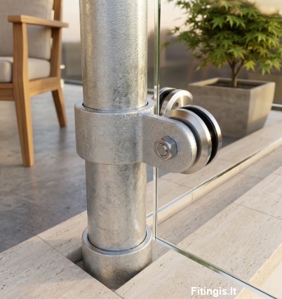 Cinkuotų arba nerūdijančio plieno vamzdžių surenkama apsauginė tvorelė su stiklo/plastiko plokštėmis.