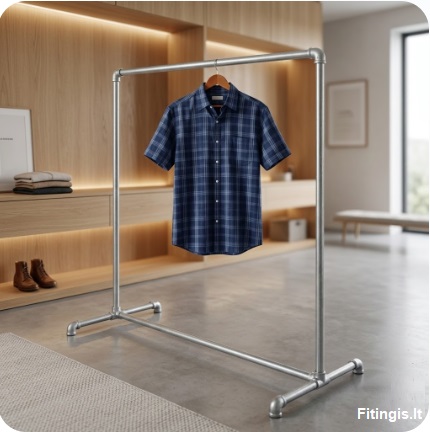 Skirtingai nei masinės gamybos lengvos konstrukcijos, ši kabykla yra skirta vertinantiems kokybę ir stabilumą. Industrinis dizainas suteikia erdvei tvarkos ir modernumo pojūtį, o patikimos jungtys garantuoja, kad konstrukcija neklibės net ir pilnai apkrauta.