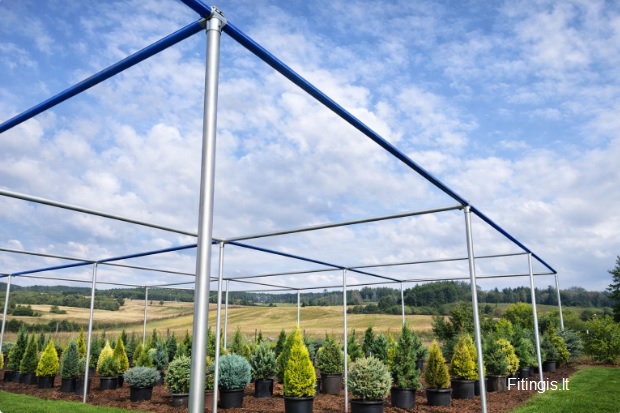 Cinkuotų vamzdžių konstrukcija šešėliavimo tinklui (augalų apsaugai nuo saulės)
